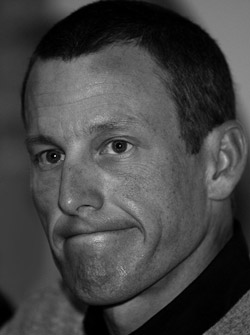 Фото 8.15. Фальшивая, с плотно сжатыми губами ухмылка Лэнса Армстронга на пресс-конференции. Фото: Jennifer Lorenzini/Splash News/All Over Press