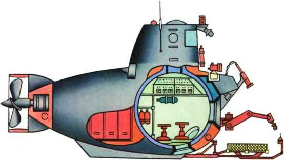 И тогда в бледном свете, которым был окружён аппарат, появилось, отделившись от лодки, странное сооружение. Плоский ящик, размером с небольшой чемодан; тонкий кабель, по которому передаётся ток для крошечных электромоторов и винтов; выпуклый глаз телевизионной камеры… Робот уверенно нырнул в чёрное устье пробоины, включил свой маленький прожектор — и тогда на экране перед командиром в лодке появилось изображение разрушенной каюты.