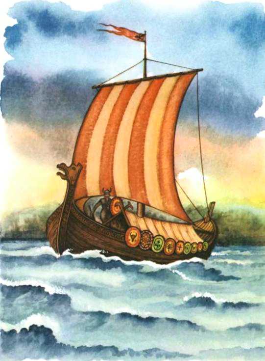 А над рогатыми шлемами викингов тихо покачивались деревянные головы драконов — ими были украшены носы кораблей, которые доставили воинов через океан.
