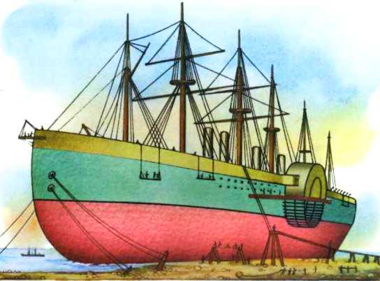 «Грейт Истерн» (так называлось судно) строили около четырёх лет. Наконец оно было готово. И тут оказалось, что его никак не спустить на воду: гигант то ломал лебёдки, то проминал наклонную дорогу из брёвен и рельсов. Помогло неожиданное ненастье. На Англию обрушился шторм, он нагнал в Темзу столько воды, что «Грейт Истерн» сам соскользнул в реку.