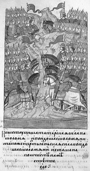 Могут сказать, что гребенские казаки жили только на Кавказе, а в средней полосе их никогда не было. Поэтому, дескать, не могло быть рядом с Куликовым полем никаких гребенских казаков. Но это неверно. Согласно преданиям самих гребенских казаков, их предки пришли на Кавказ ИЗ РЯЗАНИ [42], том 1, с. 12. То есть, по сути, из московских пределов. Расстояние между Москвой и Рязанью — 175 километров. А часть нынешней московской области в эпоху Куликовской битвы даже считалась рязанской землей. Например, подмосковный город Коломна, расположенный всего в 90 километрах от Москвы, по мнению князя Олега Рязанского, был рязанским городом. Летопись сохранила жалобу князя Олега к Мамаю, где он сетует на то, что Дмитрий Донской отобрал у него Коломну: «Восточному волному великому царю Мамаю… велики обиды аз, твой улусник, приях от того князя Дмитрия… Еще же и ГРАД МОЙ, КОЛОМНУ, за себя заграбил» [25], лист 26 (лицо и оборот).