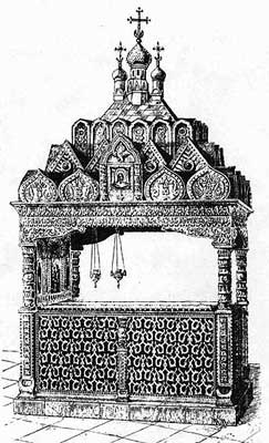 Рис. 87. Деревянный крест, установленный недавно в память о воинах, павших в Куликовской битве и захороненных на старом кладбище Спасо-Андроникова монастыря. Об этом нам рассказали сотрудники, музея, расположенного в монастыре. Фотография 2000 года.