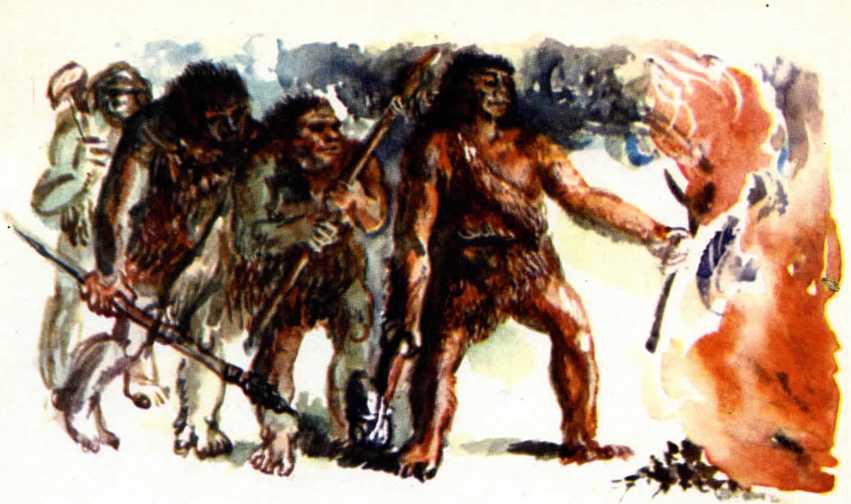 Но были же и смельчаки! И однажды кто-то решительно подошел к пламени, погрел озябшие руки, а может быть, даже подобрал испекшийся в золе корень, съел его и рассказал своим братьям, что пламя — доброе, а корень, полежавший в нем, — необыкновенно вкусен.