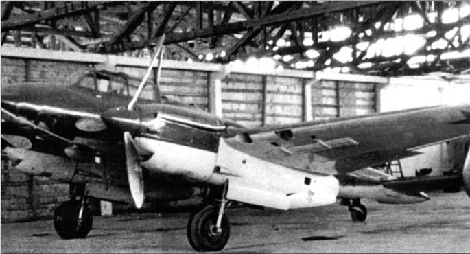 Этот Пе-2 31-й производственной серии немцы захватили прямо в ангаре. Обратите внимание на открытые створки бомбоотсека в мотогондоле. Под носовой частью фюзеляжа виден обтекатель антенны радиополукомпаса РПК-2. Необычна окраска самолета: глянцевый оливково-зеленый верх. Лопасти воздушных винтов – цвет полированного металла. Низ самолета – светло-голубой.