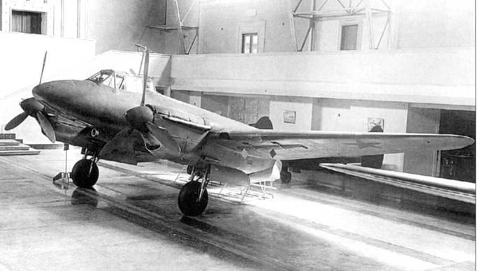 Пе-2 115-й производственной серии в демонстрационном ангаре Бюро новой техники ЦАГИ. Ангар до сих нор стоит на углу улицы Радио в Москве, но Пе-2 внутри к сожалению нет. Хвостовая часть самолетов 115-й серии была деревянной.