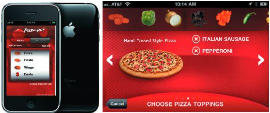 Рис. 9.23. Ресторан Pizza Hut успешно использует в качестве меню приложение iPhone для быстрого и удобного заказа пиццы