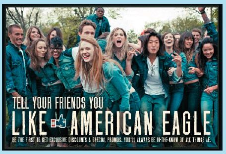 Бренд American Eagle использует возрастающую значимость социальных сетей в жизни 18–25 летних потребителей, которые уже имеют значительное количество друзей на Facebook.
