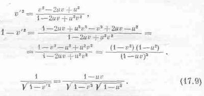v’=(v-u)/(1-uv’) (17-8)