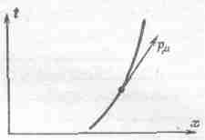 Таким образом, эти преобразования выявили четыре величины, которые преобразуются подобно х, у, z, t. Назовем их четырехвектор импульса. Так как импульс — это четырехвектор, его можно изобразить на диаграмме пространства-времени движущейся частицы в виде «стрелки», касательной к пути (фиг. 17.4).