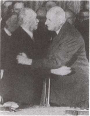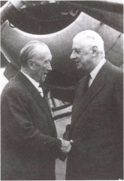 Де Голль и Аденауэр: объятия после подписания франкогерманского договора.