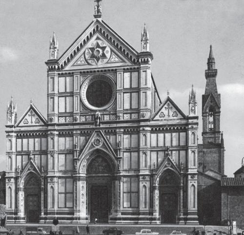 Санта-Кроче, возможно, наименее христианская из церквей – даже менее христианская, чем церкви Рима; с другой стороны, здесь, в этой церкви, более всего прославляется, обожествляется человек. Пройдя перед могилой Галилея, вы поклонитесь надгробию Микеланджело, чтобы подойти затем к гигантскому памятнику, воздвигнутому в честь Данте. Сюда Флоренция сложила останки самых великих своих жителей, от Макиавелли до Альфиери и Уго Фосколо, здесь прославила флорентинцев, обогативших духовное наследие человечества и умерших под другими небесами. Наука, искусство, политика, история век за веком сносили сюда свои отложения в виде прославленных костей, каждый раз укрывая их слоями мрамора. Настоящий пантеон, только появившийся в XIV веке, который так и останется приходской церковью.