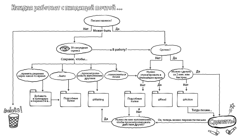 Вопросы диаграммы обработки электронной почты составлены таким образом, чтобы границы не размывались. Очень важно, чтобы папка @Action оставалась священным местом, куда не попадало бы ничего такого, чему в ней не место. Вот чего вы должны избегать любой ценой: