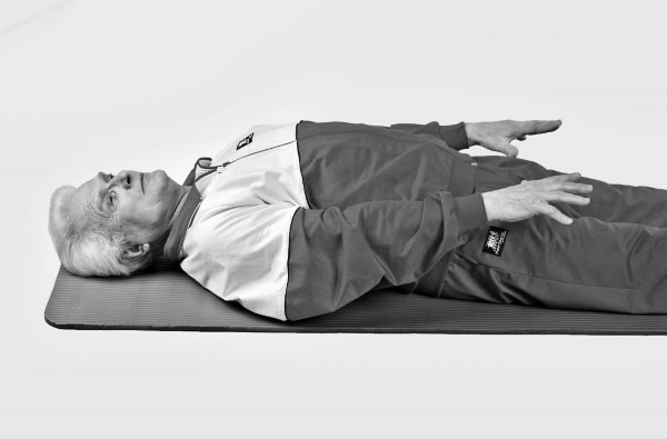 • Исходное положение: лежа на правом боку, туловище выпрямлено, ноги прямые, левая нога лежит на правой.