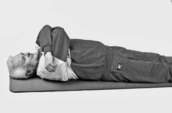 Если каждое движение причиняет вам мучительную боль, сгибайтесь не до конца. Немного подтянув на вдохе чуть согнутые в коленях ноги к подбородку слегка наклоненной головы, постарайтесь на пассивном выдохе всего чуть-чуть выпрямить тело. Если тяжело делать без остановки 8 вдохов-движений, выполняйте подряд 4 или даже только 2 движения, а отдых продлите до 10 секунд.