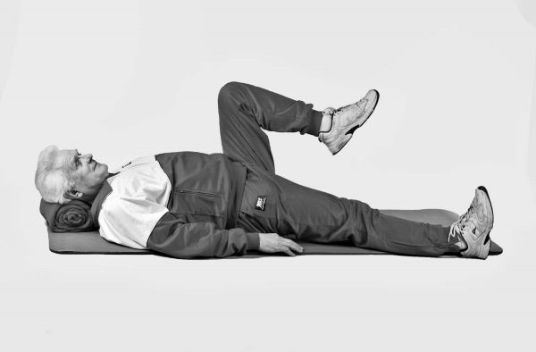 • На счет «раз» на вдохе поднять правую ногу.