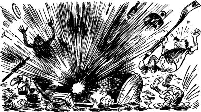 Случилось это в жаркий воскресный день, во время массового гулянья с потреблением безалкогольных напитков. Когда Сваргунихин перевозил буфетную комиссию на другой берег, у него в лодке взорвалась четверть с квасом. Председатель месткома был ранен, казначей получил пробкой в лоб, а Сваргунихин лег на дно лодки и объявил себя контуженным.