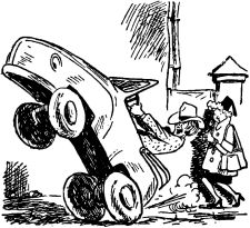 …Второй способ назывался почему-то «бродвейским». Авто тормозилось так, будто сдерживаешь горячего необъезженного мустанга: гикая и произнося ругательства на иностранных языках. Особым шиком Альберт считал, если при этом одно колесо машины залезет на тротуар.