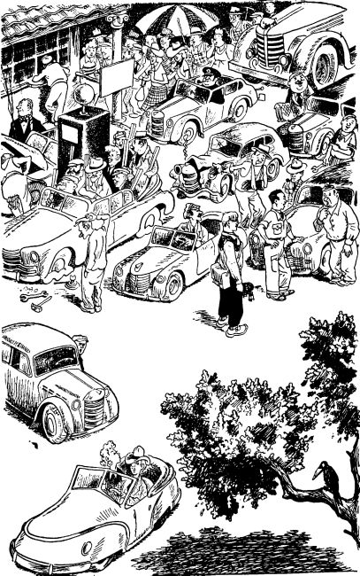 — Товарищ главный, — вкрадчиво обратился к Владимиру Прохоровичу какой-то испуганный автопутник в майке и крагах. — Видите ли, я только начинаю учиться водить автомобиль… И машина-то не моя, а одного приятеля…
