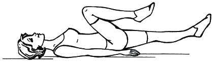 Исходное положение лежа на спине, правая нога согнута в колене, левая прямая, правая рука на затылке, левая вытянута в сторону. Выдохнув, согните левую ногу по направлению к правому плечу, которое в этот момент потяните к левому колену. Затем вернитесь в исходное положение. Выполните 3 подхода по 10 раз в медленном темпе.