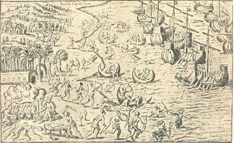 Современное Колумбу изображение: посещение испанцами острова каннибалов
