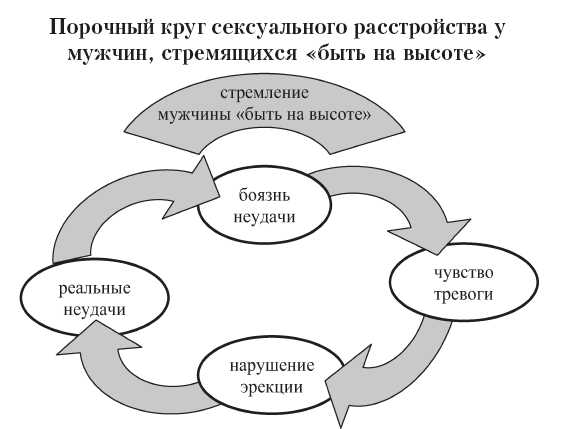 Эрекция является рефлекторным актом, а рефлекс – есть рефлекс. Поэтому для того, чтобы возникла эрекция, должен подействовать соответствующий стимул. Мужчины же почему-то думают, что тут все происходит «по щучьему веленью, по моему хотенью». Впрочем, оттого, что они так думают, проблем становится не меньше, а больше. Чувство тревоги и сексуальное возбуждение – вещи друг с другом несовместимые. Именно из-за страха перед возможной неудачей и возникают проблемы с эрекцией. Если мужчина думает, что у него что-то «не сработает», он в буквальном смысле этого слова программирует себя на отсутствие эрекции. Навязчивые, тревожные мысли «Сумею ли я удержать эрекцию?», «Сумею ли я удовлетворить свою партнершу?» – не могут не привести к утрате полового влечения, со всеми вытекающими отсюда последствиями.