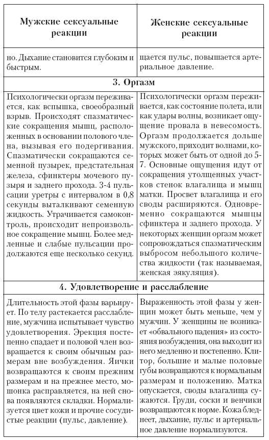 Сейчас, дорогие лопухи, мы рассмотрим последовательность сексуальных реакций (мужских и женских) в рамках одного «полового акта». Но «акт» понимается здесь скорее в смысле театральном, нежели в примитивно-сексологическом, им может быть и коитус (копуляция), а может быть и несколько минут, проведенных за онанизмом (мастурбацией), и даже ночная поллюция, и даже пережитый женщиной во сне оргазм (все это, конечно, с небольшими модификациями общей схемы, но единой для всех случаев).