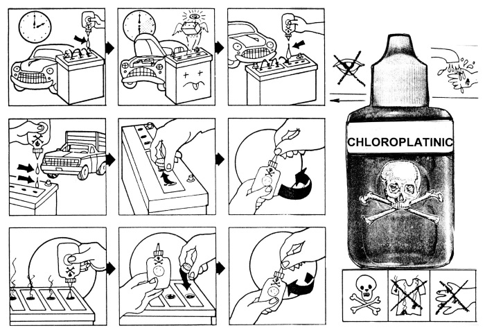 На рисунке 271 (второй ряд) — стреляющая сигарета «Camouflaged Weapon, 22 Caliber; Cigarette». Это маскированное оружие. 22 калибра в виде сигареты, которая используется в данной стране; предназначено для одноразового использования (один выстрел) и перезарядке не подлежит. Устройство находится в стандартной (а) для данной страны сигаретной пачке и среди прочих (также стандартных) сигарет (б) стреляющая сигарета практически неотличима (в). Стреляющая сигарета предназначена для поражения цели на расстоянии до 10 футов (на больших расстояниях велика вероятность промаха). Несмотря на небольшие размеры оружия, пуля пробивает двухдюймовую доску. Для производства выстрела из стреляющей сигареты нужно: 1) взять сигарету как показано на рис. 271,г; 2) снять предохранитель (переместив штырек) левой рукой или зубами; 3) зажимая сигарету средним и безымянным пальцами, большими указательным пальцами повернуть «фильтр» против часовой стрелки до упора (г), после чего оружие готово к выстрелу; следить за тем, чтобы пальцы не оказались на линии огня (у дульного среза); 4) навести сигарету на цель и произвести выстрел нажатием на «фильтр».