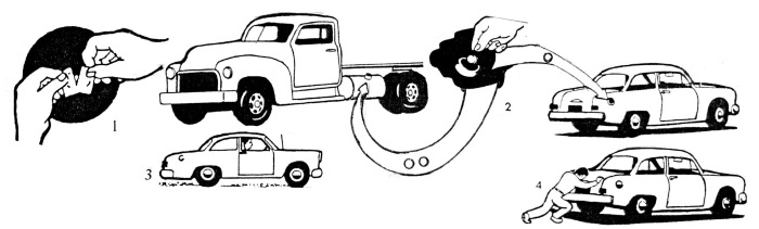 На рисунке 270 (верхний ряд) — стреляющее устройство в сигаретной пачке, приводящееся в действие кнопкой.
