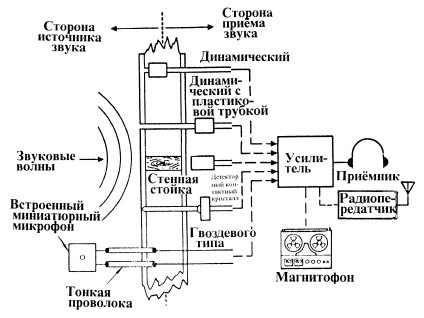 — установка различной подслушивающей аппаратуры (микрофонов-«жучков»);