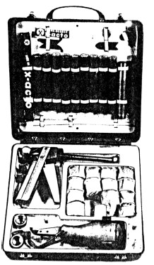 Обнаружение в помещении радиомикрофона более легкое дело (из-за его излучения), чем проводного. Поэтому применение последнего иногда более предпочтительно. Однако прокладка проводки — более длительная операция, чем установка радиожучка. С целью ускорения этого процесса агенты ЦРУ применяют специальное устройство — инсталлятор «Audio Installation, Kit, Fine Wire». Этот набор находится в небольшом металлическом кейсе (рис. 26), комплектация которого показана на рис. 27. Он позволяет прокладывать тоненькие провода в трещинах, щелях или на поверхностях строительных конструкций без видимых швов или других повреждений. Инсталлятор прорезает (рис. 29) резцом, находящимся впереди устройства, бороздку на поверхности (стене, потолке, полу), за ним следует собственно установщик, с которого провода (сматывающиеся с бобины, расположенной внутри инсталлятора) укладываются в бороздку и покрываются (из специального пистолета) быстротвердеющей пастой, заранее подобранной по колеру (цвету) к тому, который имеет конструкция. Помимо маскировки паста выполняет также функцию крепежного элемента, удерживая провод в бороздке. Специальный сигнализатор инсталлятора мгновенно предупреждает агента, если в цепи происходит разрыв (повреждение прокладываемого провода).