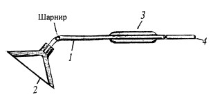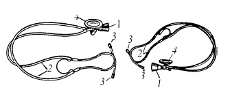 1 — базовый стержень; 2 — наушник; 3 — ручка; 4 — слуховой стержень
