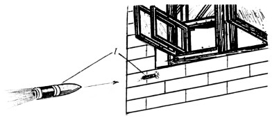 Рис. 57. Пуля — радиомикрофон в полете и в кирпичной кладке