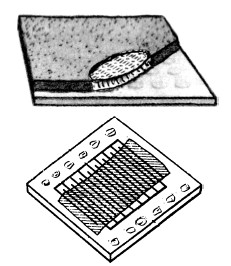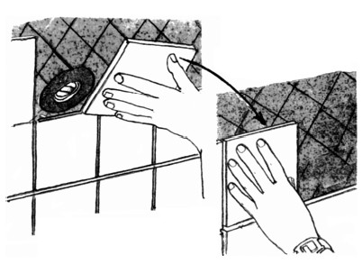 Однако случаи закладки жучков в еще только строящееся здание, подобно рассмотренному выше, носят единичный характер, а чаще установка подслушивающих устройств в строительные конструкции осуществляется в подлежащих прослушиванию помещениях в процессе их косметического ремонта (правда, вариант с таким «ремонтом» возможен только по отношению к организации, которая не считает себя слишком секретной). Такой ремонт обычно бывает спровоцирован самой резидентурой: например, агенты арендуют помещение, расположенное над требуемым, затем нижнее помещение «случайно» заливается водой из крана, который «забыли» закрыть наверху; потом приходят «строители» (которых любезно за свой счет нанимают виновники затопления), и в процессе ремонта производят закладку жучков в проделанные ими углубления в стенах и перегородках, маскируя их сверху, например, обоями (рис. 63) или облицовочной плиткой (рис. 64), причем иногда и сама плитка может нести в себе жучок (рис. 65), что ускоряет его установку, позволяя не долбить отверстие в стене.