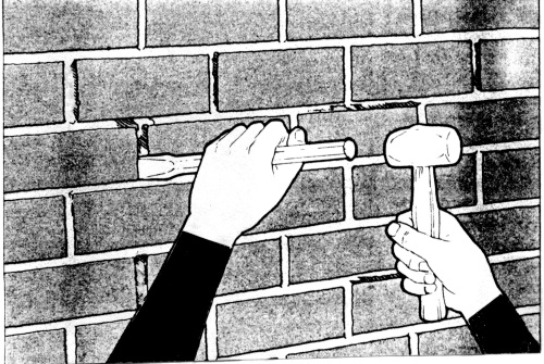 Тем временем кирпичи стены (рис. 120) потихоньку разбираются (расшатываются) и в нужный момент ночью или в выходной день делается окончательная разборка части стены (пролом) — рис. 121.