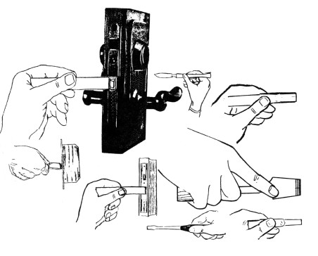 Чем секретнее объект, на который предполагается проникновение, тем меньше шансов заранее изготовить ключи к нужным замкам. В этом случае пользуются отмычками. Агенты ЦРУ используют, в частности, так называемую отмычку — складной нож — «Lock —