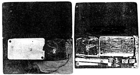 Понятно, что применение для снятия оттисков стенса и паст требует относительно много времени, которое не всегда у агента может быть в распоряжении. Кроме того, представляет определенную сложность последующее изготовление ключа (особенно в случае с пластилином) по отдельным оттискам двух его сторон. Поэтому агенты ЦРУ снабжаются специальным набором для изготовления ключей, лишенным перечисленных недостатков — «Кеу Impressioning Kit», который позволяет не только мгновенно сделать оттиск, но и изготовить ключ, как говорится, не сходя с места. Набор содержится в металлической коробочке размером: 15х7х3 см. На рис. 130 показаны варианты наборов Моdеl-1 и Моdеl-2: а — алюминевая изложница (литейная форма) — две раскрывающихся половинки с модельной глиной; б — порция модельной формовочной глины; в — пузырек с тальком; г — наперсток для плавки припоя (сплава) (рис. 131); д — проволочный держатель наперстка (рис. 133); е — шесть кусков-порций (по форме наперстка) легкоплавкого металлического сплава Cerebum (рис. 132) — для Моdеl-2; или пластин из Cerrobend (рис. 134) для Моdеl-1, с температурой плавления 158° F; ж — свеча.