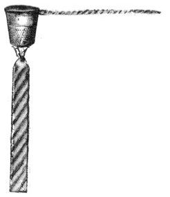 7) в наперсток поместить припой и удерживать его над горящей свечой до получения расплава (рис. 136);