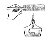 При растворении кобальтового королька в нашатырном спирте получаются красные чернила с аналогичными свойствами. Для их проявления необходимо термическое воздействие — нагрев, например, над лампой (рис. 208) или проглаживание утюгом (рис. 209).