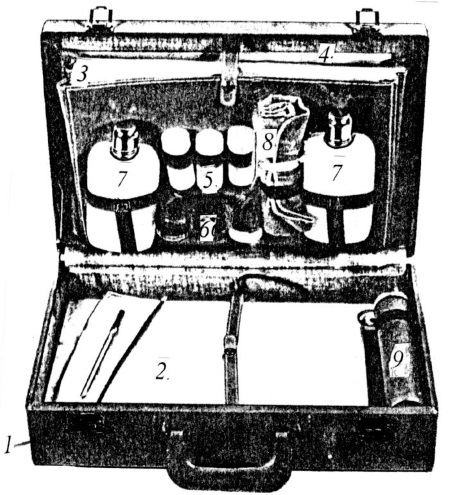 Рис. 242. Портативная коротковолновая радиостанция «RS–1» 1– передатчик RT–3; 2 — приемник RR–2; 3 — электробатарея RP–1