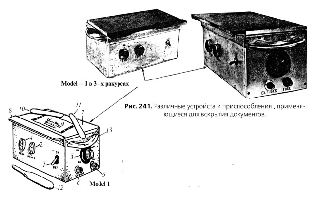 «Radio Station, Attachё Case» (рис. 248) — объединенные в одном внешне стандартном кейсе (типа «Halliburton») модули радиостанции RS-6; она работает в коротковолновом диапазоне 4,5–22 МГц на волне CW. Дальность приемопередачи при работе из закрытых помещений составляет до 300 миль. При работе на местности (с применением наружной антенны) дальность связи доходит до 3000 миль. Ключ Морзе расположен на верхней панели станции. Конструкция весьма прочного кейса «Halliburton» обеспечивает защиту модулей от тряски (повреждений) при путешествии агента, например, автомобилем или мотоциклом.