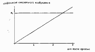 Сексуальный голод начинается с нуля при t = t0 (сразу после эякуляции) и растет как линейная функция времени