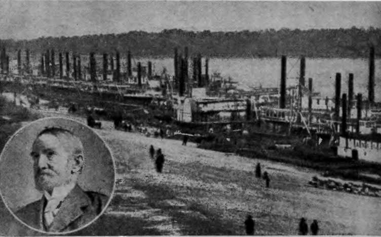 Набережная в Сэнт-Луи (пятидесятые годы XIX в.); слева фотография Биксби, 1907 г.