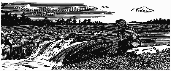 Холодный родничок возле нашего костра бежит в ту сторону гор, где вишни цветут, и соловьи поют в яблонях, и, может быть, люди, если верить песням и сказкам, где-нибудь там нежно любят друг друга. Мы ночевали в лесу, и родничок нам журчал о благодатной южной стране. Утром затоптали костер, прошли немного, и вот он опять, родничок, бежит, только не в ту сторону, южную, а в нашу, беломорскую, где, пусть бывает, между людьми и еще нежнее любовь, но где только в песнях поют о благоухающих садах, и никто никогда не видал цветущей вишни и не слыхал соловья, и вся жизнь у всех нас проходила с малолетства в суровой борьбе с суровой природой.