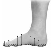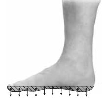 Усилие разделяет стопу продольно пополам (в горизонтальной плоскости) на подошву и подъем. При этом «нижняя» ее половина устремляется вниз, вжимаясь в землю, расширяясь. Задерживайтесь в каждом положении на 30 секунд, постепенно наращивая усилие. Точки ментальной фиксации находятся на условной линии, разделяющей стопу посередине (фото 28).