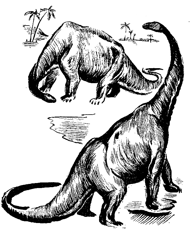 Утром они проснулись и принялись за еду. А пока они ели, откуда-то донесся рев. Бронтозавр сразу перестал жевать, выронив из пасти пук водорослей. Он поднял голову, прислушался, и глаза его заблестели, а шея начала раздуваться. В реве слышался вызов, ревел — где-то еще очень далеко — самец, ревел соперник. Теперь, когда самка была рядом, бронтозавр стал смел и решителен, он никого и ничего не боялся и он не намеревался уступить место без боя. Раскрыв пасть, он ответил таким криком, что самка, привыкшая к реву самцов, даже отшатнулась от него, оглушенная этим громоподобным ревом.