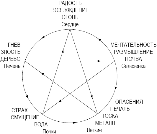 Так, человек много сидит у компьютера на работе. Придя домой, он постоянно обдумывает сделанное и переживает на тему завтрашнего совещания. При этом сильно расходуется стихия Почвы. Почве при дисбалансе свойственны нарушения желудка, селезенки и поджелудочной железы. Проблемы с пищеварением, соответственно Циклу Ухода (рис. 12), приводят к нарушению сердечной деятельности. Так как к Стихии Огня относится и Тройной обогреватель – эндокринная система, человек становится нервным и легко возбудимым. Пищеварительный тракт забирает много энергии из всей системы и ослабляет щитовидную железу и перикард. Может возникнуть невралгия сердца. Человек начинает обвинять других в том, что они неблагодарные, а он много сил тратит на них.
