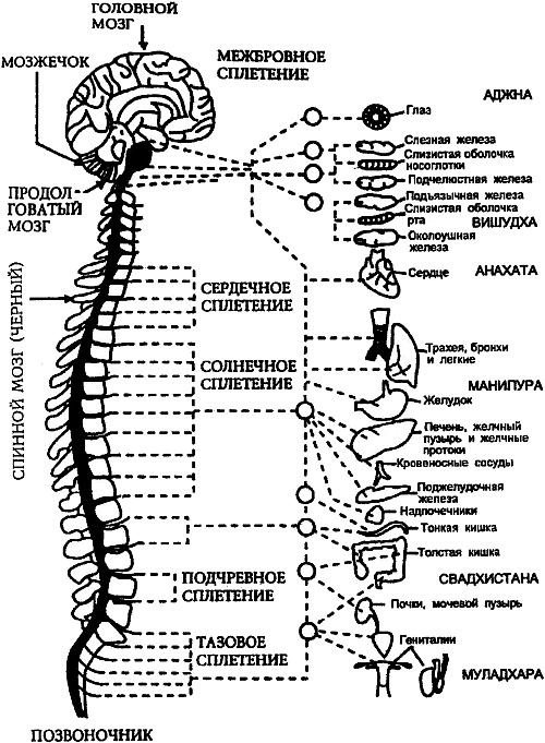 Рис. 20. Расположение зон, связанных с органами, вдоль позвоночника