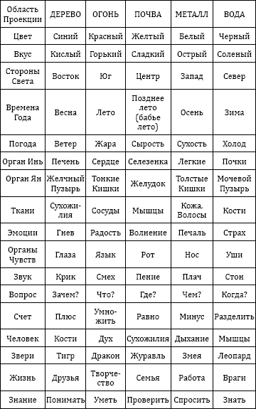 Рис. 5. Пять стихий и соответствия