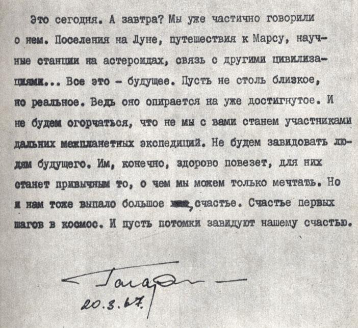 Американский художник Рокуэлл Кент сказал: «Советские друзья, ваш Юрий — не только ваш, он принадлежит всему человечеству. И ворота в космос, которые он открыл, распахнуты для всех нас...»