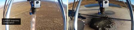 Кадры из видеоролика с испытаний выложенного на YouTube. Первый кадр — корректировка курса, сверяясь с ориентирами на местности. Второй — после посадки в заданный участок.